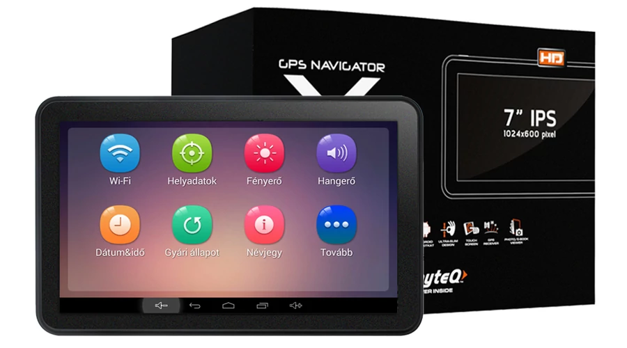 Kijelző: 7” 1024x600 kapacitív, nagy fényerejű LCD érintőképernyő (Navigációs szoftver nélkül)