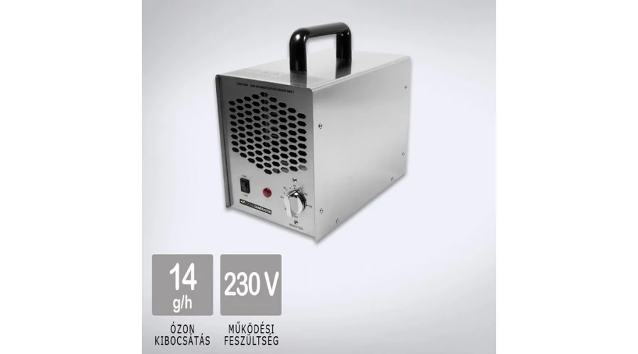 Chrome 14000 léghigiéniai készülék ózongenerátorIdőzítővel ellátott, 2 nagy ózonlapos, 14 g/óra ózonkibocsátással rendelkező ózongenerátor, amelyet már ipari célra, lakásfelújítások, festések, tűz- és vízkárok utáni szagtalanításra is lehet használni a gépjárművek belső terének és klímájának szagtalanításán és fertőtlenítésén kívül. Megközelítőleg 225 m2 alapterülethez ajánljuk.Paraméterek: