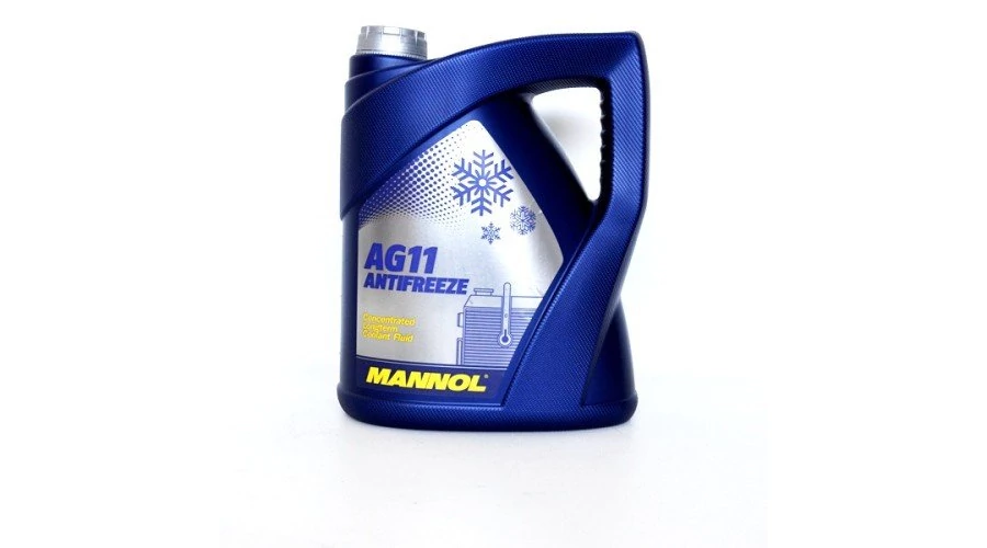 Fagyálló Mannol kék AG11 Antifreeze koncentrátum 5LiterEgész évben használható kék színű fagyálló koncentrátum, korszerű alumínium és rézből készült hűtőrendszerek részére, melyekhez etilén-glikol alapú hűtőfolyadék ajánlott. Véd a korróziótól és a ráégésektől.Speciális habosodás gátló adalékainak köszönhetően nem igényel az oldáshoz ioncserélt vizet, elegendő, ha a vizet felforraljuk. Semleges a vízcsövekhez és tömítésekhez. Korrózióvédő hatást fejt ki.