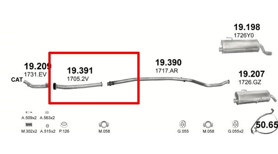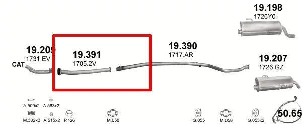 Kipufogócső, közép, Peugeot 206, 1.1-1.6, 2000-2006