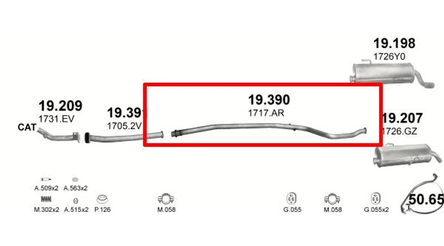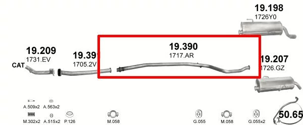 Kipufogócső, közép, Peugeot 206, Hatchback, 1.1-1.4, 2000-2006
