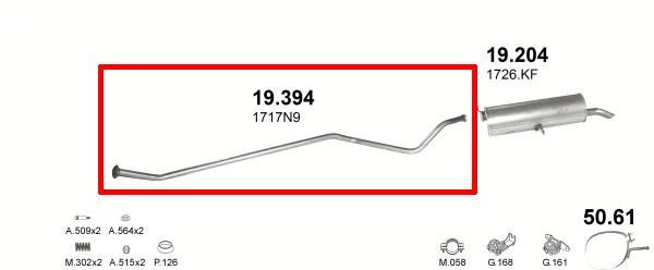 | Kipufogócső, közép, Peugeot 307, hatchback, 1.4, 2001-2004 | |