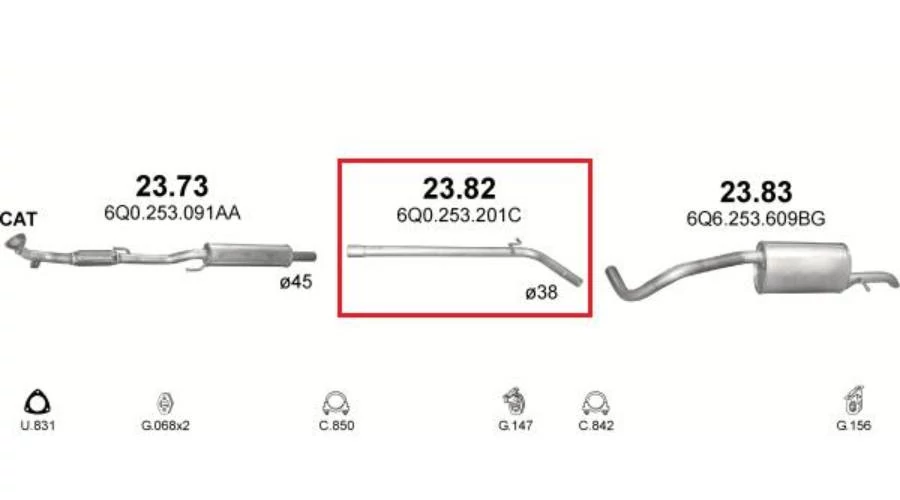 Kipufogócső, közép, Seat Ibiza, Fabia, VW Fox, Polo, 1.2, 2005-2011.12