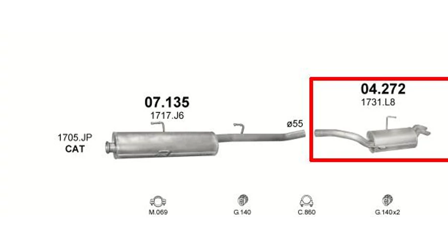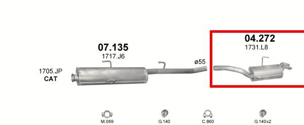 Kipufogódob, hátsó, Citroen Evasion, Jumpy, Fiat Scudo, Peugeot 806, Expert, 2.0, 2000-2005.04