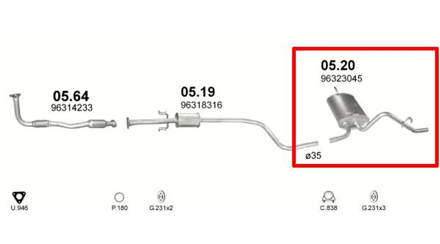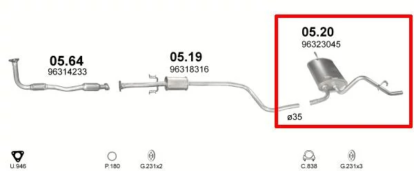 Kipufogódob, hátsó, Daewoo Matiz 0.8, 1998.04-2000.08