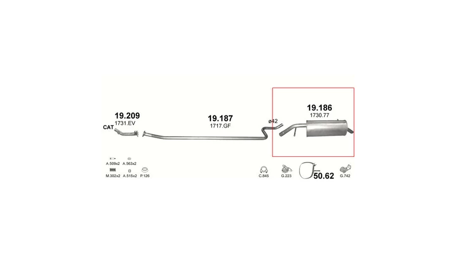 Kipufogódob, hátsó, Peugeot 207, 1.4, 2006-2008.04