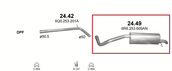 Kipufogódob, hátsó, Skoda Fabia, Seat Ibiza, VW Polo, 1.2-1.9, 2007-