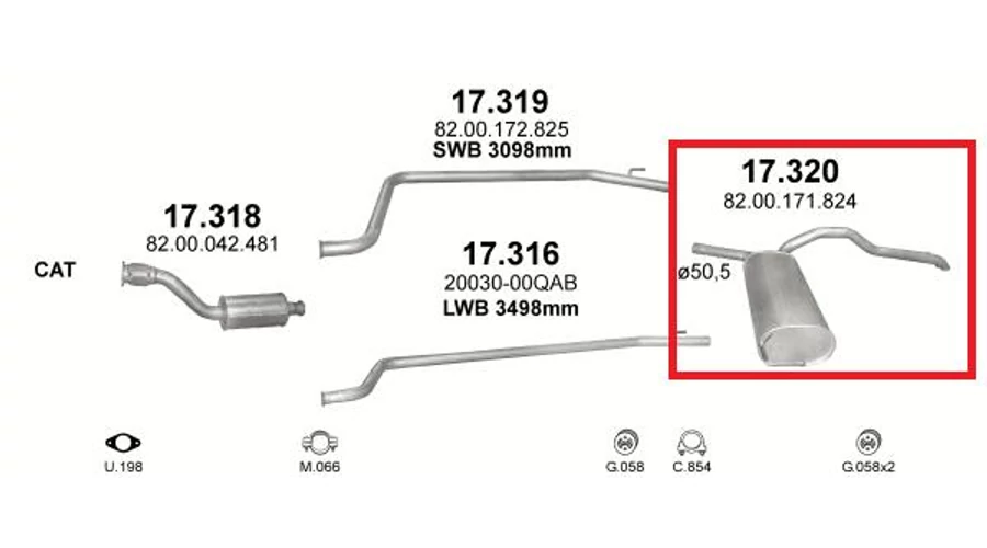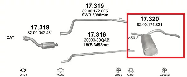 | Kipufogódob, hátsó, Vivaro Van, Nissan Primastar, Renault Traffic II, 1.9-2.0D, 2001-2006.07 | |