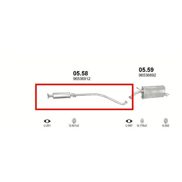 Kipufogódob, közép, Daewoo Kalos, 1.2-1.4, 2002-2008.05