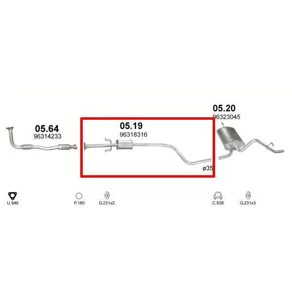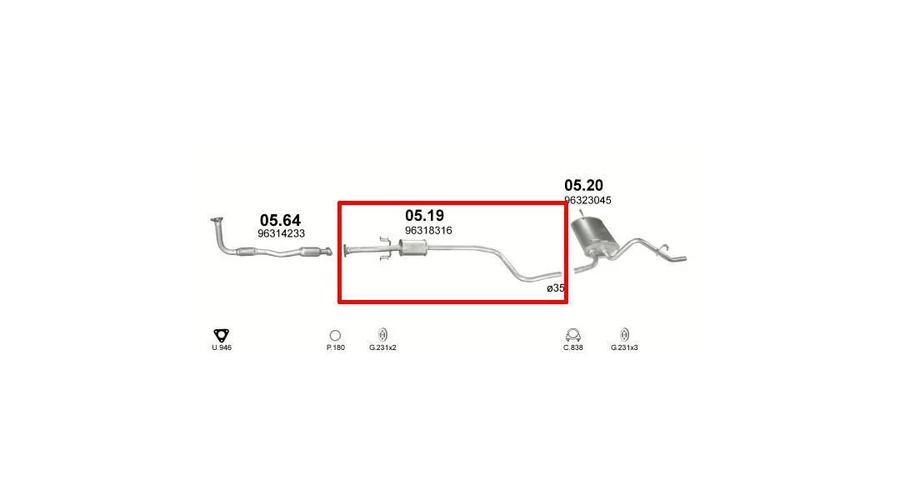 | Kipufogódob, közép, Daewoo Matiz, 0.8, 1998-2000.08 | |