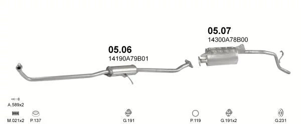 | Kipufogódob, közép, Daewoo Tico Hatchback, 0.8, 1993- | |