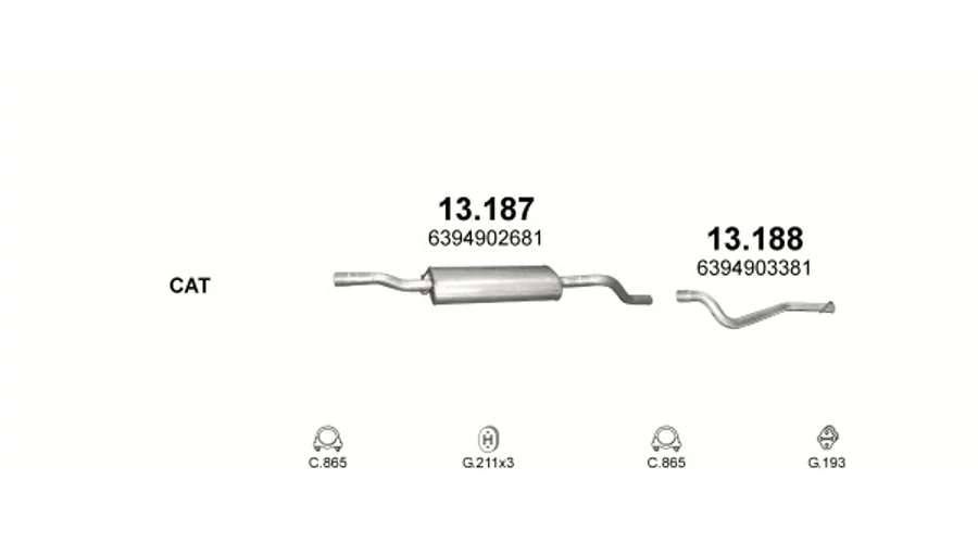 POLMO Kipufogódob, közép, Mercedes Viano, Vito, 2.0-2.2D, 2003-K13.187ALU |