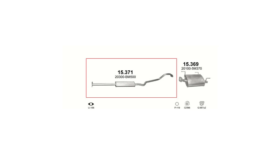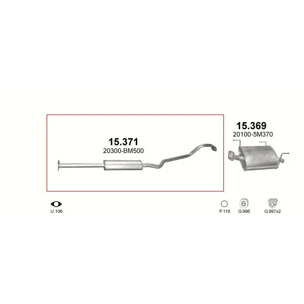 | Kipufogódob, közép, Nissan Almera Hatchback, Sedan, 1.5, 2002-2006 | |
