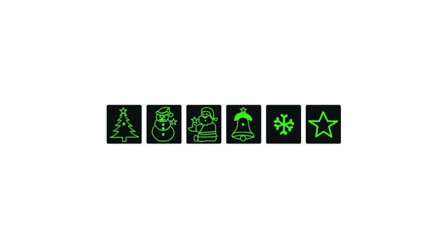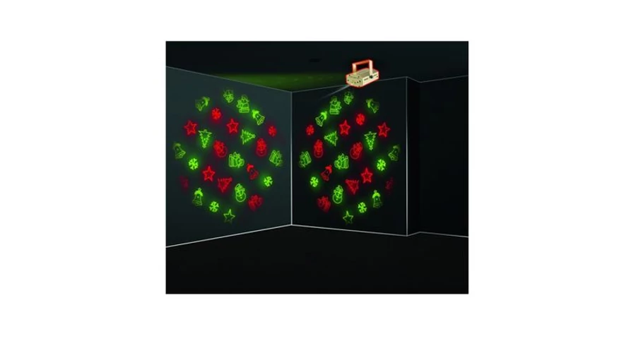 Lézer projektor, karácsonyi fényeffekt, 230VA DL XMS segítségével igazán könnyedén meglehet idézni a karácsony hangulatát. A projektor mozgó, ábrákat vetít ki a falra. Világításáról pedig 2 db (piros, zöld) lézer gondoskodik. |