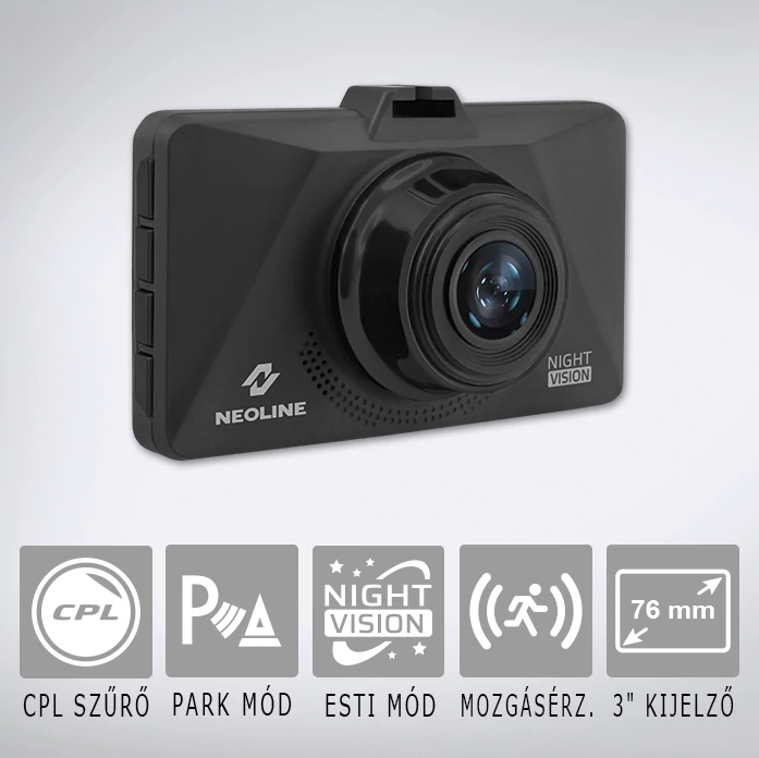 A NEOLINE Wide S39 olyan további extra funkciókkal rendelkezik, mint a hangrögzítés, mozgásérzékelés, folyamatos felvétel, utastér nézet, melyekkel a legapróbb részleteket is rögzíthetjük.