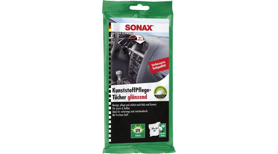 SONAX Műanyagápoló kendő 10db-osTISZTÍT ÁPOL ÉS VÉD MINDEN BELSŐ ÉS KÜLSŐ, FA GUMI ÉS MŰANYAG FELÜLETET.HASZNÁLATA AZ AUTÓMOSÁSOK KÖZÖTTI IDŐSZAKBAN IDEÁLIS.GYORS ÉS PRAKTIKUS. |