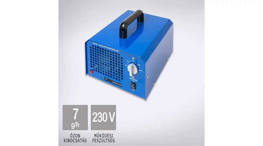 Ózongenerátor Blue 7000 léghigiéniai készülék (dupla ózonlapos)Időzítővel ellátott, dupla ózonlapos, 7 g/óra ózonkibocsátással rendelkező ózongenerátor. Gépjárművek belső terének és klímájának, valamint normál méretű szobák és lakások szagtalanítására és fertőtlenítésére ajánlott.