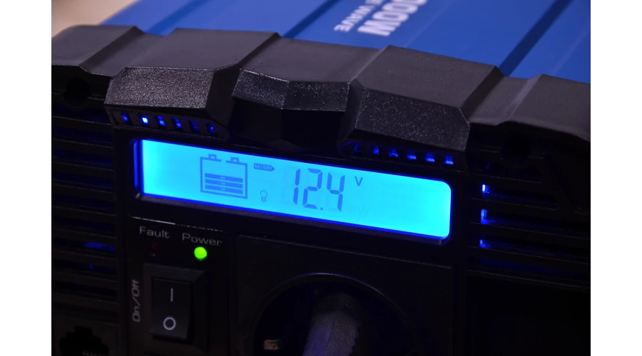 Feszültség átalakító tiszta szinuszos inverter Solartronics 12V 2000/4000 W KÉK kijelzővelÚjdonság a megvilágított kijelzőn mindig látható a pontos bemeneti feszültség. Ezzel az eszközzel 230 V váltakozó áramot lehet generálni 12 V DC feszültségről (például autóakkumulátorokból vagy napelemes rendszerekből származó akkumulátorokból), és így sok háztartási készüléket üzemeltethet 230 V névleges feszültséggel. Csomag tartalma: Feszültség átalakító inverter, csatlakozókábel kb. 60 cm DC, kapcsolási rajz és használati útmutató